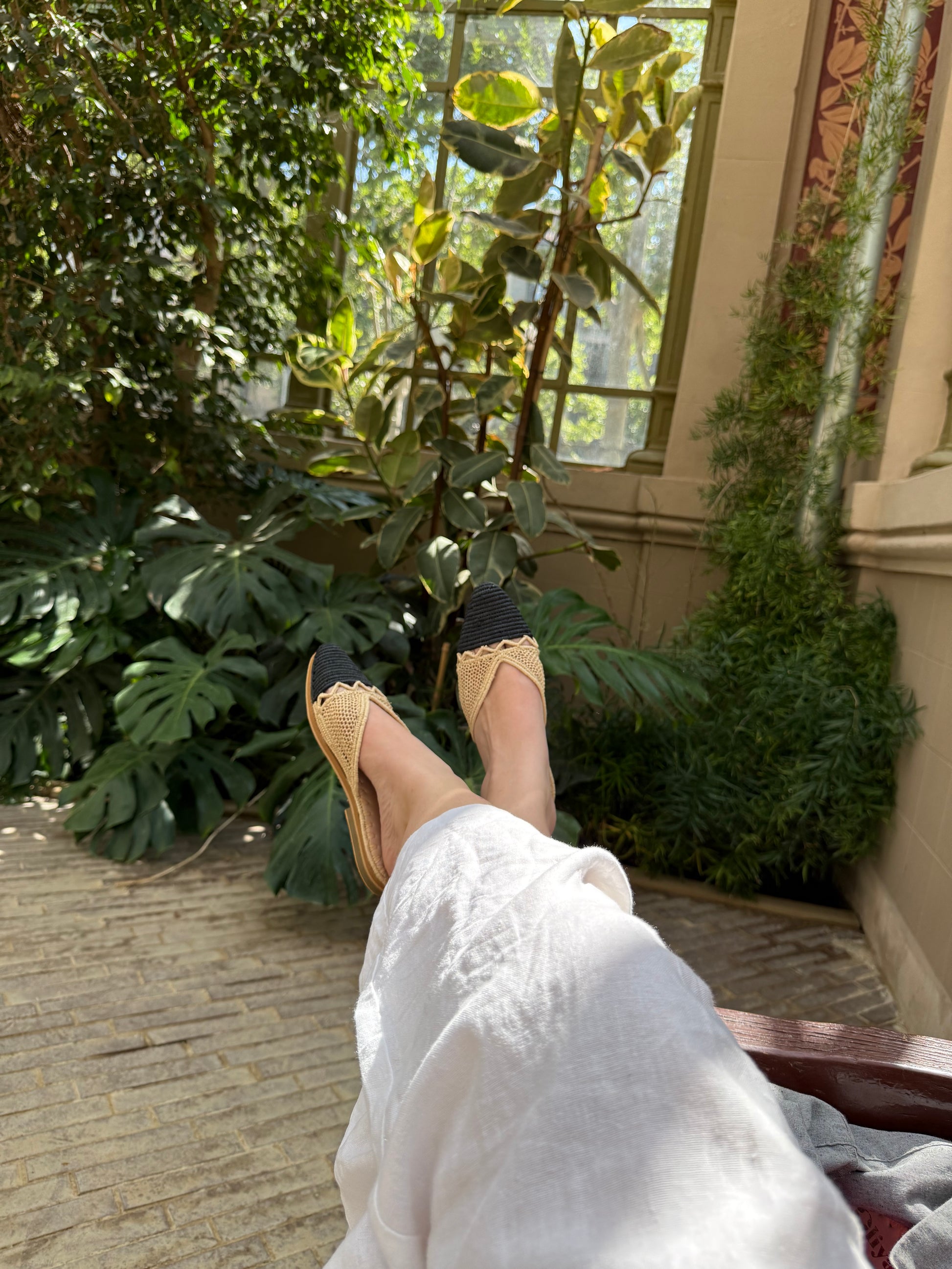 These sandals combine the warmth of natural raffia with the elegance of black, striking the perfect balance between artisanal and sophisticated. Handcrafted with attention to detail, they stand out for their elegant and timeless design. The leather sole provides comfort and durability, making them ideal to accompany you in style on any occasion. Lightweight, versatile, and with a distinctive touch, they are the perfect choice for those who seek authenticity without compromising on elegance.